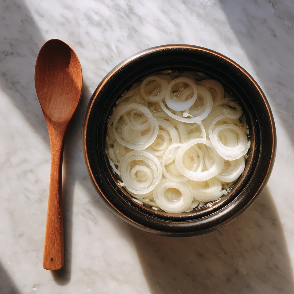 Start by peeling your onion and slicing it thinly. You can go for full rings or half-moons—it’s totally up to you. I personally love the half-moon shape because they lay flatter on top of dishes like burgers or casseroles.