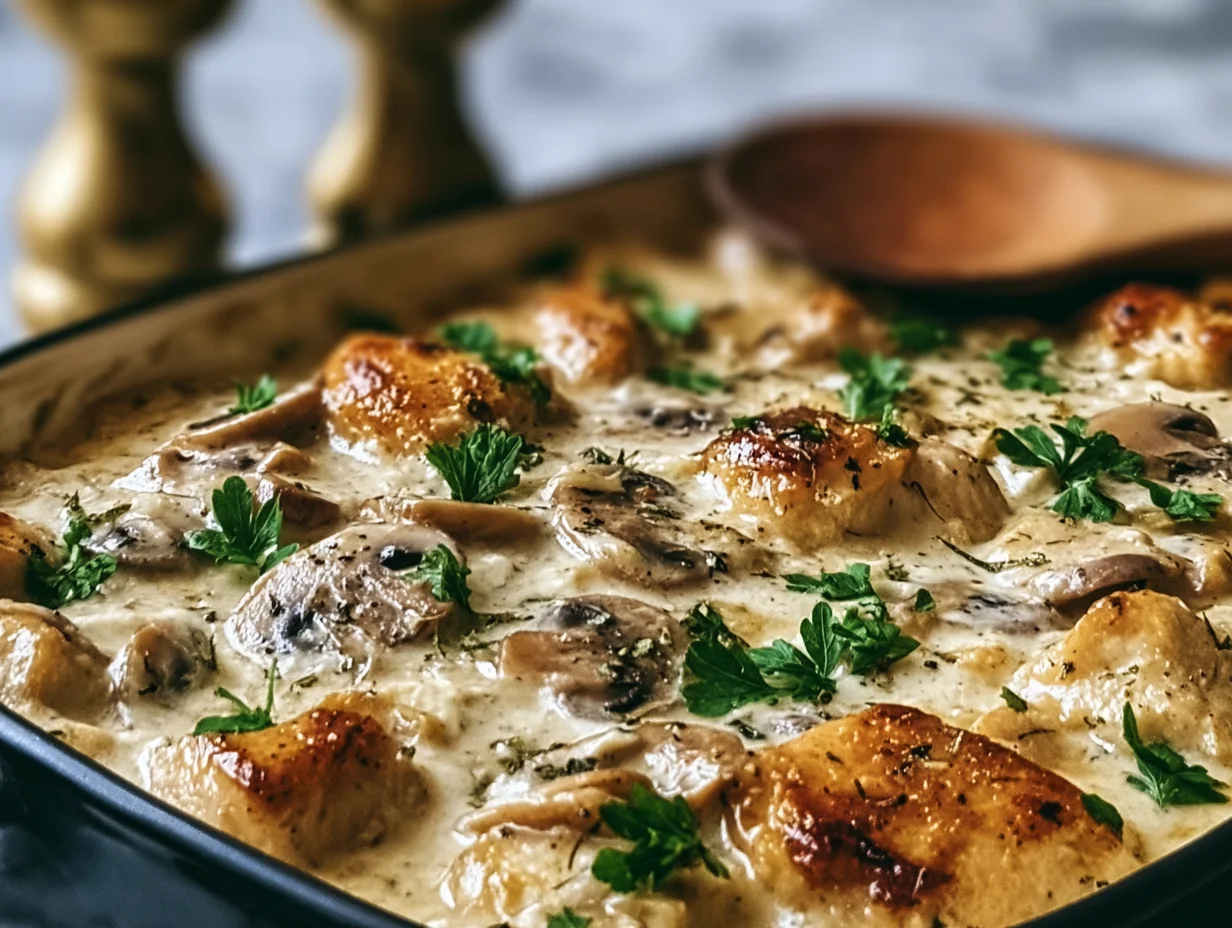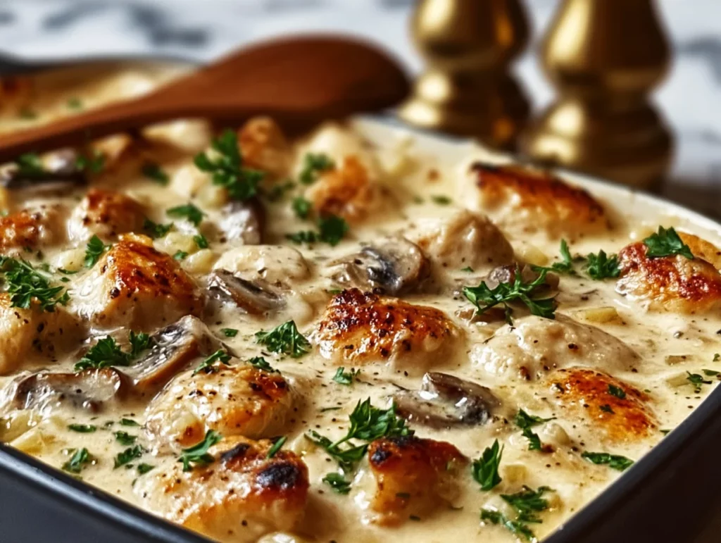 Baked Chicken Stroganoff is a creamy, comforting casserole-style take on the classic Russian-inspired dish. Tender chunks of chicken are combined with a rich mushroom and sour cream sauce, then baked until bubbly and golden. This recipe is ideal for a cozy family dinner and pairs well with egg noodles, rice, or crusty bread.
