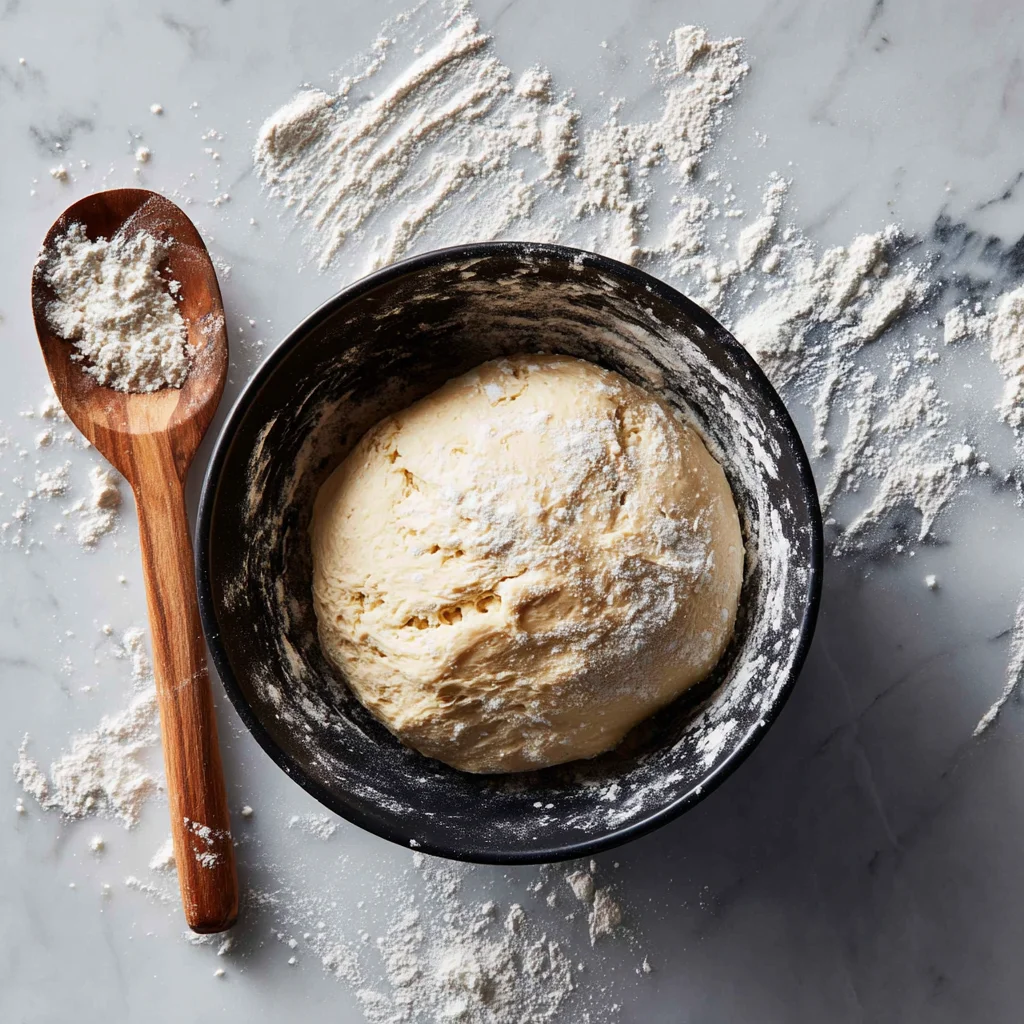 Use a wooden spoon or silicone spatula to mix until a rough, shaggy dough forms. Don’t worry if it looks a little messy at this point—that’s normal.