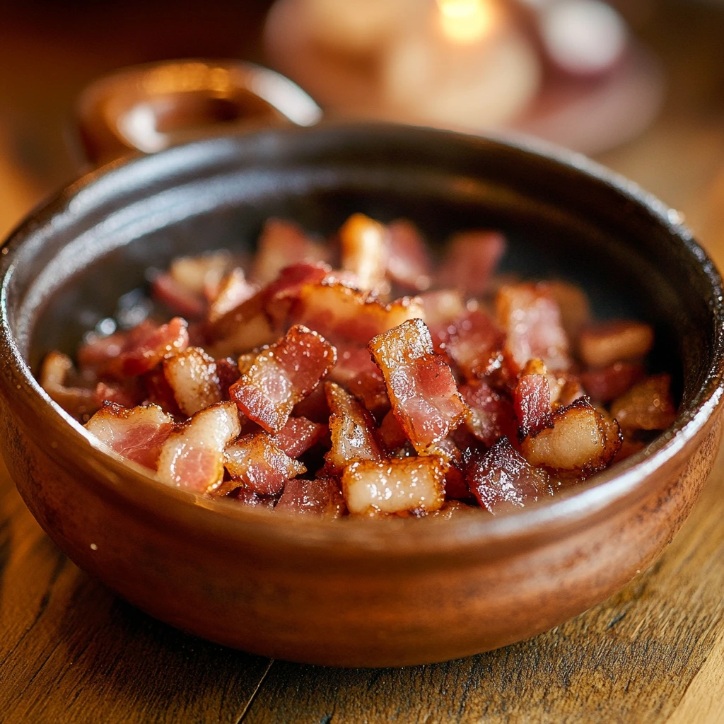 Start by heating a large pot or Dutch oven over medium heat. Add the diced turkey bacon and cook it until it’s beautifully crispy. Once done, use a slotted spoon to remove the turkey bacon bits and set them aside on a paper towel-lined plate. Be sure to leave about 2 tablespoons of turkey bacon grease in the pot to build that rich, smoky flavor base. If there’s too much grease, just drain the extra—no need for a greasy soup!