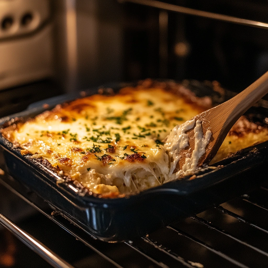 5️⃣ Stir halfway through: About 15 minutes into baking, gently stir the casserole to help the cheese melt evenly.
