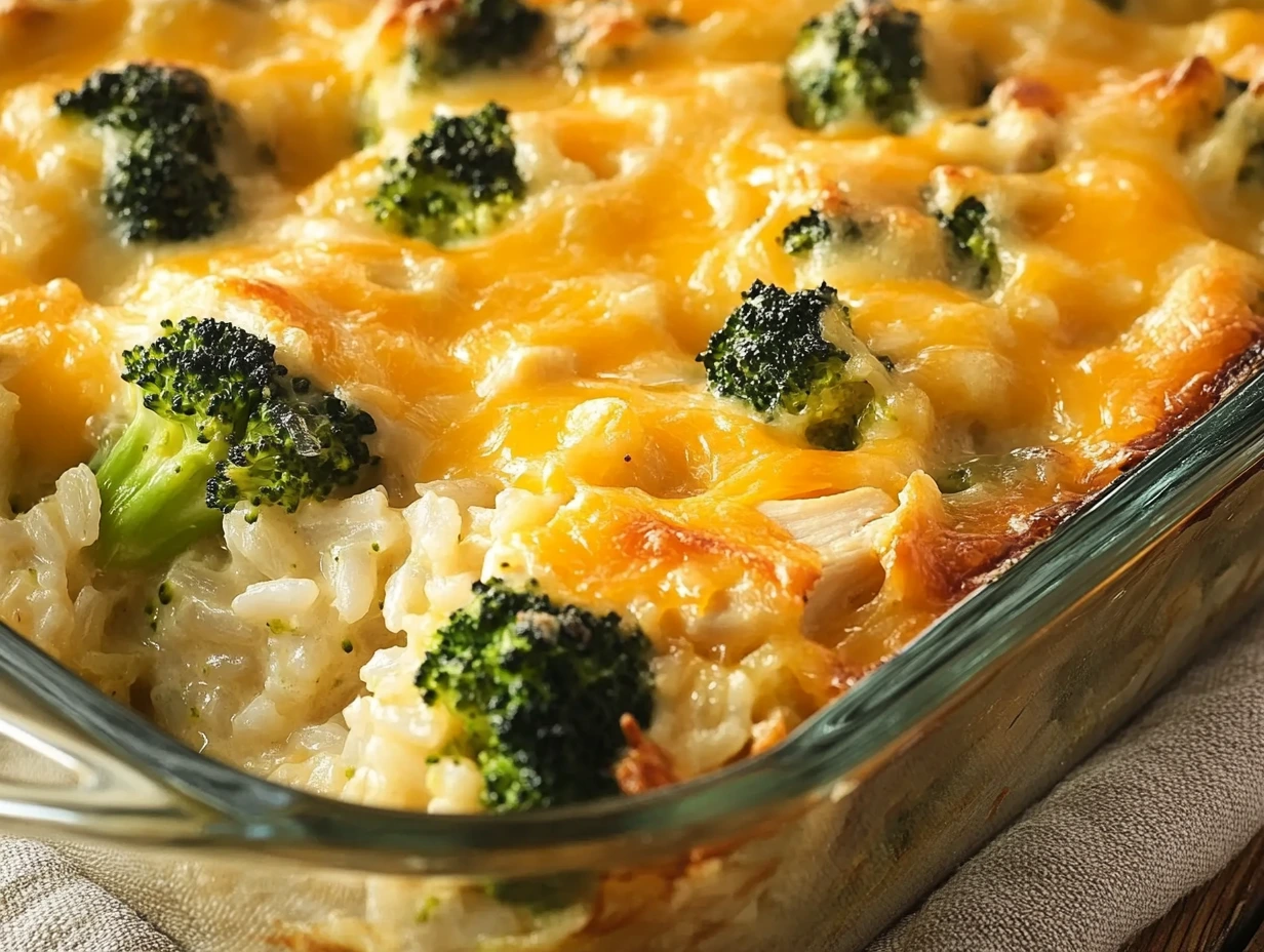 This creamy, cheesy, and comforting casserole is packed with tender chicken, broccoli, and rice—all baked to perfection! It’s an easy, crowd-pleasing dish that’s perfect for busy weeknights or potlucks.