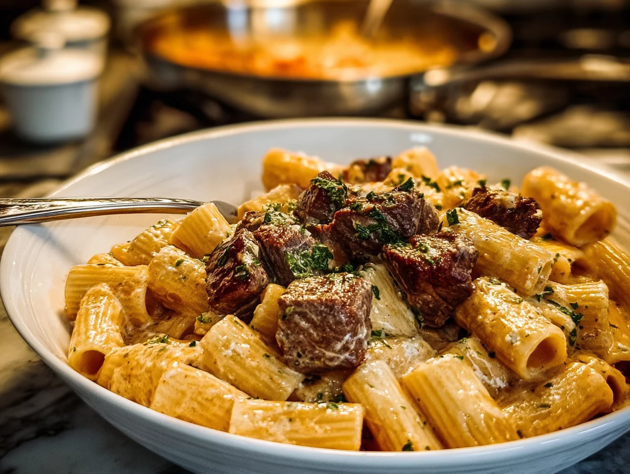 I made this dish on a whim after craving something cozy but not too fussy—and let me tell you, it did not disappoint. It’s one of those meals that feels restaurant-worthy but comes together with pantry staples and a few fresh ingredients. Think tender steak bites seared to perfection, nestled in a creamy, cheesy sauce with rigatoni soaking up all that goodness. It’s the kind of dinner that gets people around the table fast—no second call needed.