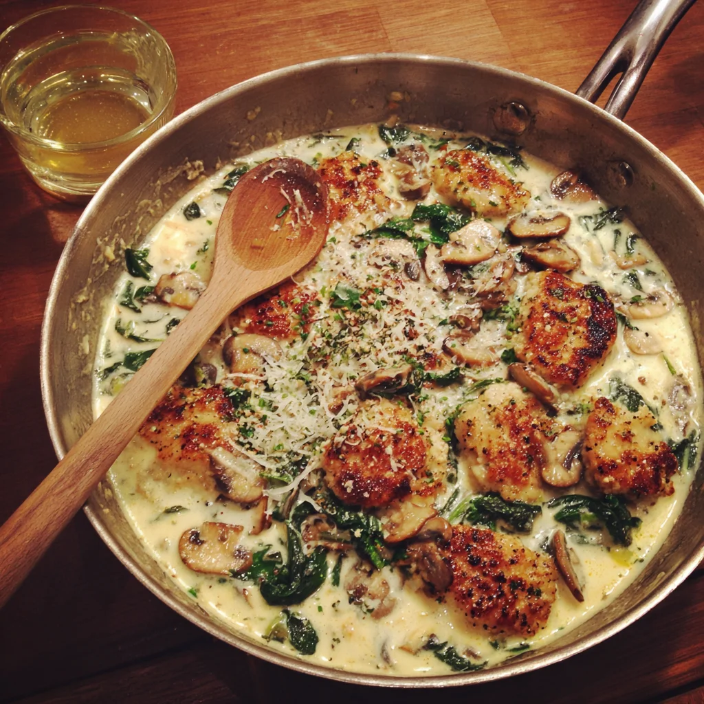 Welcome back! Now that we’ve seared our chicken to golden perfection and softened the mushrooms and spinach, it’s time to dive into what really takes this dish over the top—the sauce. This next part is where everything comes together in one creamy, dreamy skillet that’s as comforting as it is impressive.