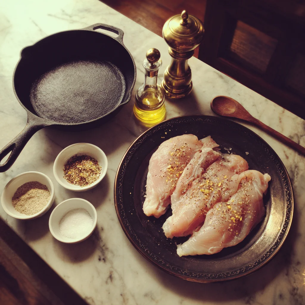 Start by slicing your chicken breasts horizontally to make four thin cutlets. This helps them cook quickly and evenly—no more undercooked centers or dry edges!