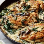 If you’ve been craving something cozy, flavorful, and actually easy to make after a long day, you’re going to love this creamy Chicken with Spinach and Mushrooms. It’s everything I want in a weeknight dinner—tender golden chicken, a rich garlic cream sauce, and hearty veggies that make it feel like a complete meal without dirtying every dish in your kitchen.