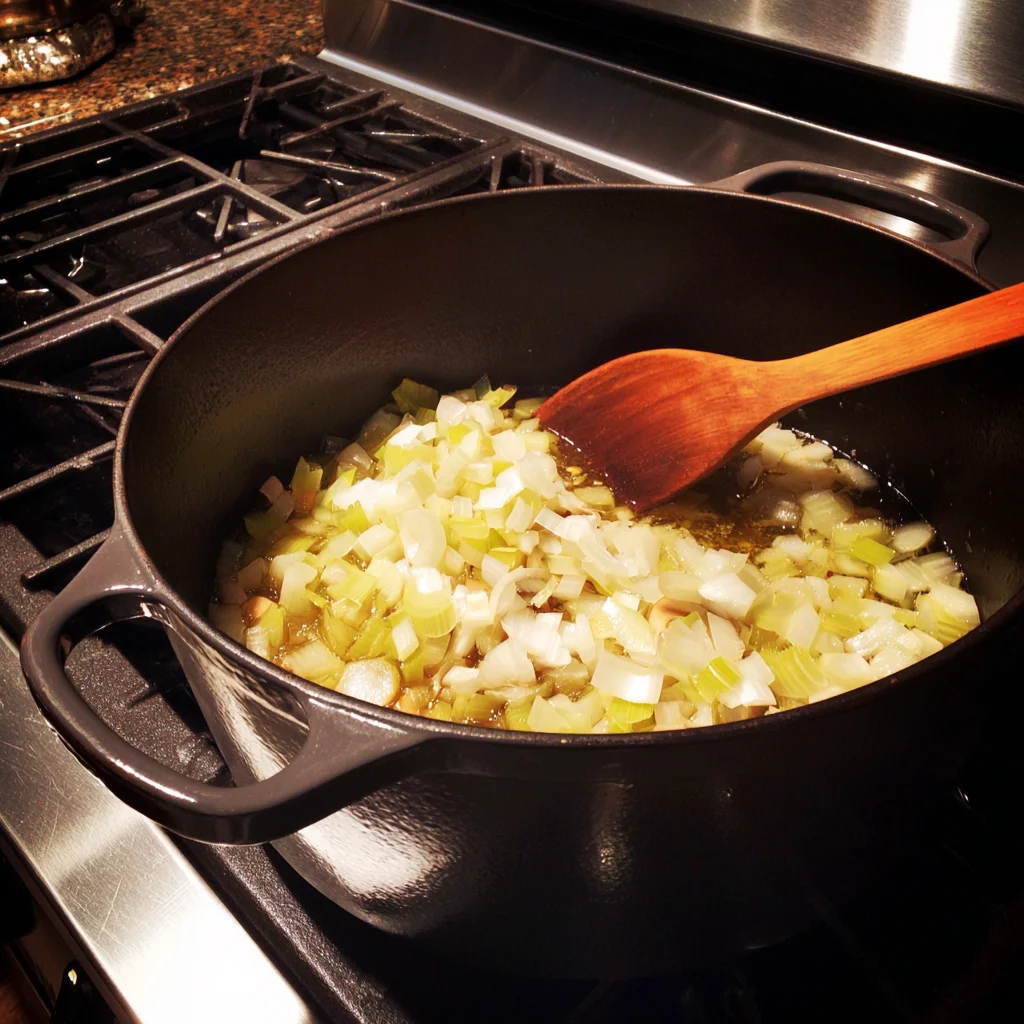 In a medium-sized skillet, heat 1 tablespoon of olive oil over medium heat. Once hot, add your chopped onion, celery, and mushrooms. Cook them down for about 5 to 6 minutes, or until they’ve softened and the mushrooms are golden brown. Then, stir in the minced garlic and cook for just one more minute—you want it fragrant, not burnt.