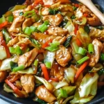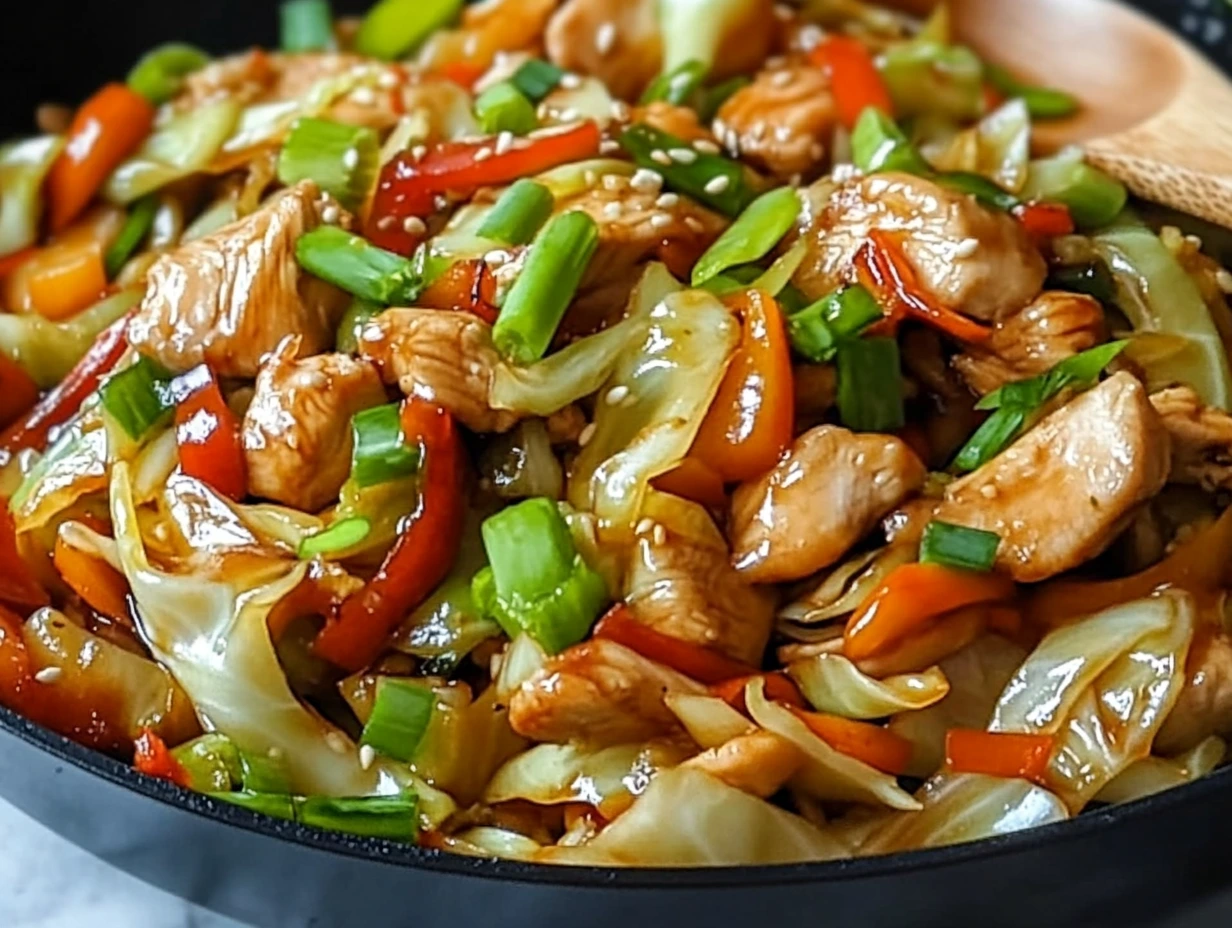 This colorful stir-fry is a quick and flavorful meal that’s perfect for busy weeknights. Tender slices of chicken are paired with crisp cabbage, sweet bell peppers, and carrots, all tossed in a savory-sweet sauce with a hint of heat. It’s light yet satisfying and comes together in under 30 minutes, making it a reliable go-to for healthy, homemade takeout.