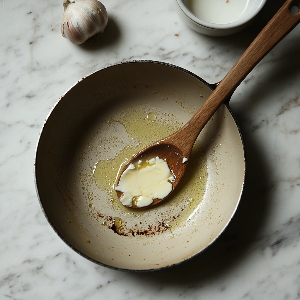 2️⃣ In the same skillet, reduce the heat to medium and add the butter. Once melted, add the minced garlic and sauté for about 1 minute until fragrant, being careful not to brown the garlic.