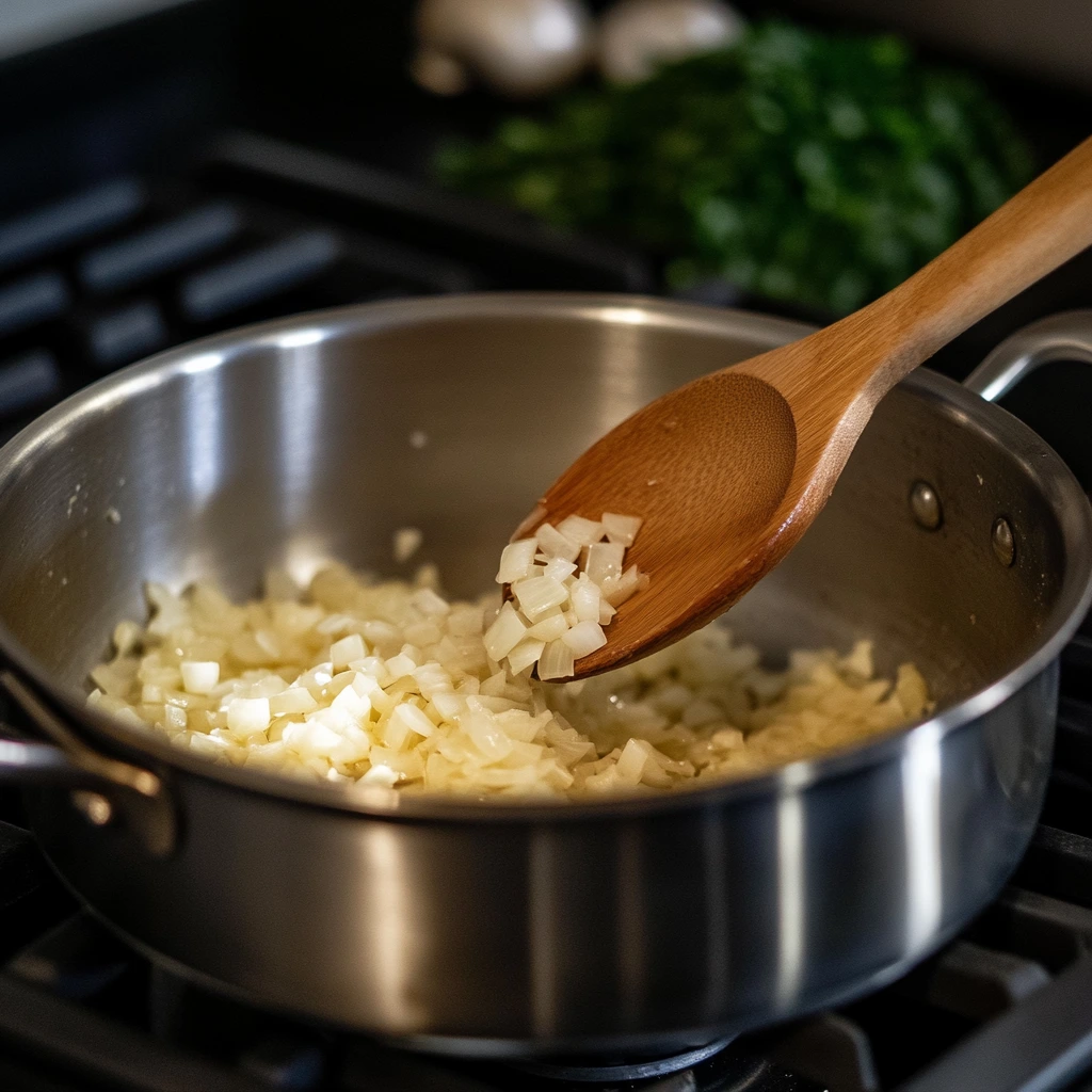 In the same pot, melt 2 tablespoons of butter and sauté the diced onions for about 5 minutes until softened. Add the minced garlic and cook for another minute until fragrant.