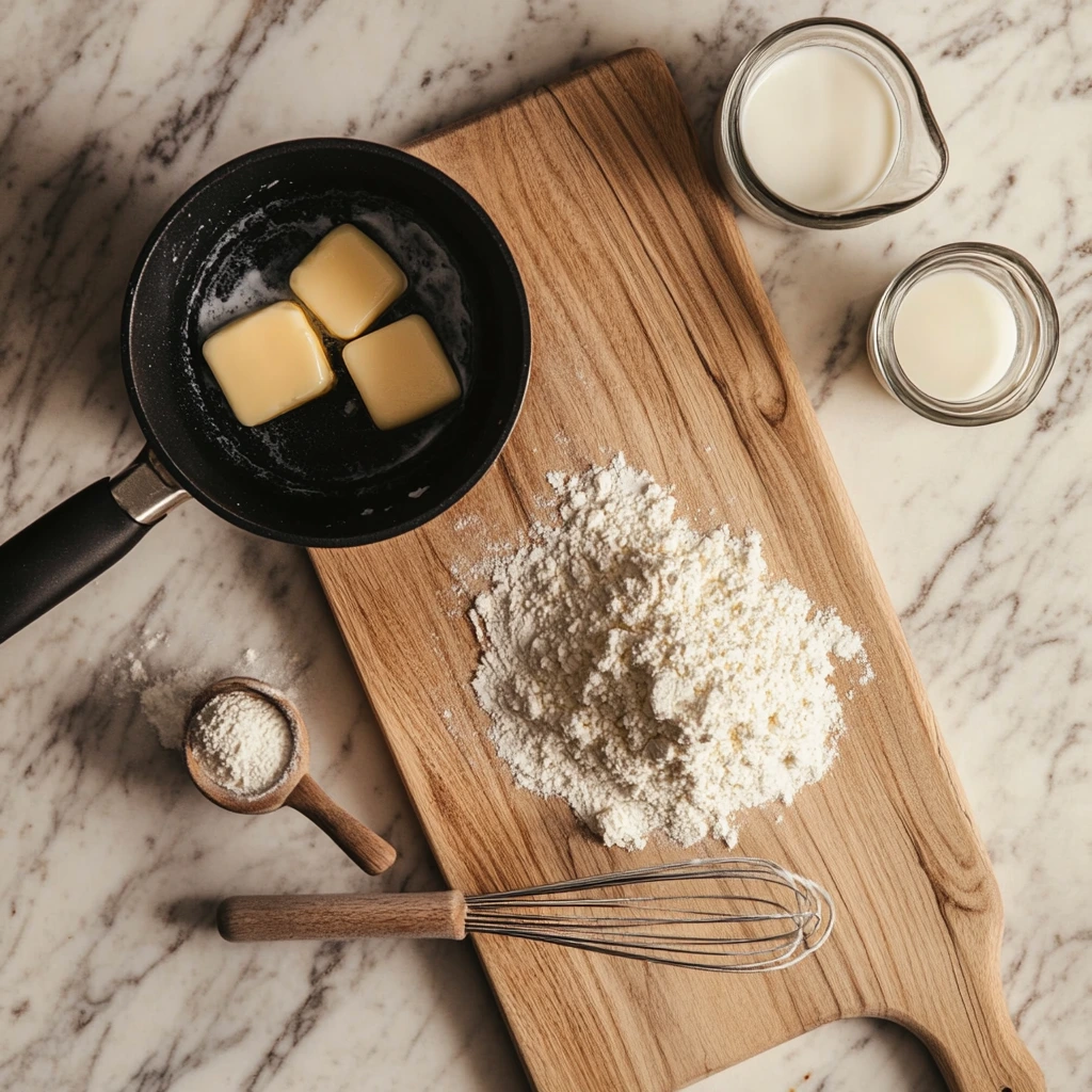 Grab a medium saucepan and melt the butter over medium heat. Once it’s fully melted, whisk in the flour and let it cook for about 1 minute. This creates a roux, which is what gives the sauce its thick, creamy base. Don’t skip this part—it’s key to avoiding a runny sauce.