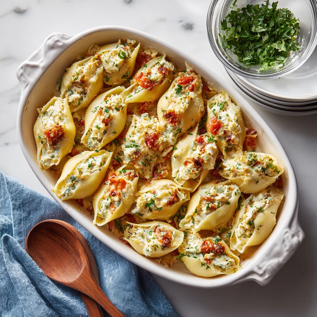 These shells are rich and filling, so light sides work best. A simple green salad with lemon vinaigrette, roasted asparagus, or garlic bread are all great options to round out the meal without overwhelming the palate.