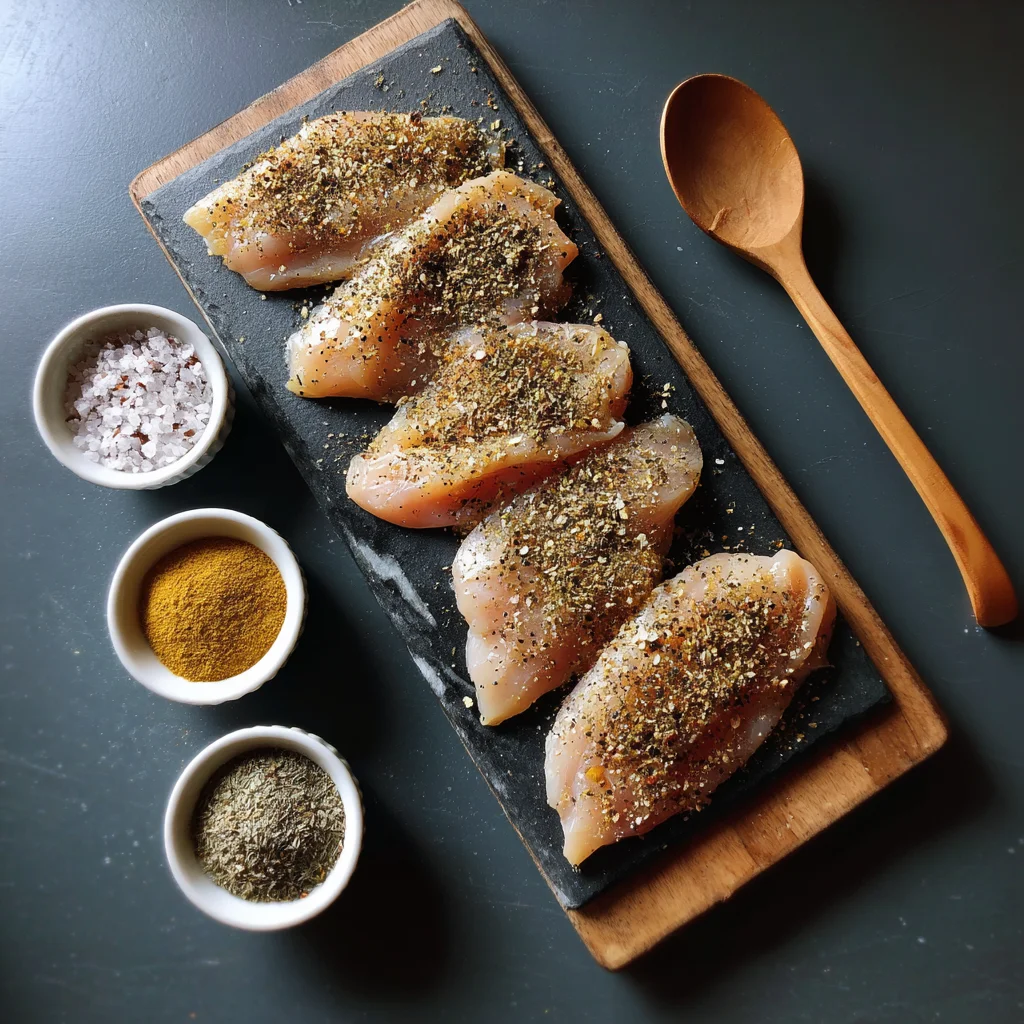 Pound the chicken breasts to an even thickness using a meat mallet or rolling pin. Cut each breast in half if desired for smaller portions