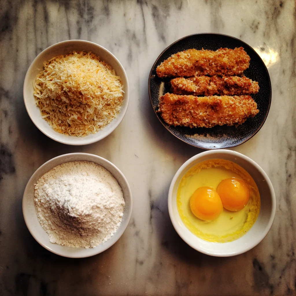 Set up three shallow dishes: one with flour, one with beaten egg, and one with a mixture of breadcrumbs and Parmesan cheese