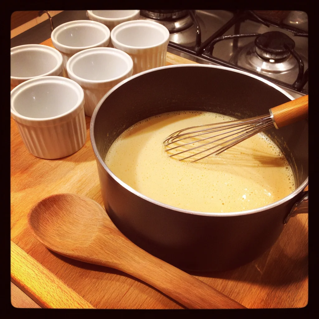 Slowly pour in the milk and heavy cream, whisking continuously to avoid any lumps. Cook this mixture for about 3 to 4 minutes, stirring frequently, until it starts to thicken slightly.