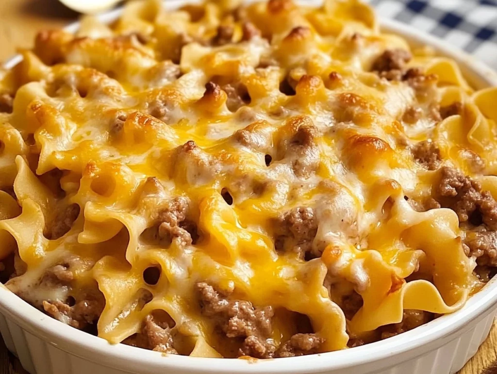 Now that the beef is cooked and the noodles are ready, it’s time to mix everything together and bake this hearty casserole to golden, cheesy perfection. This step is where all the flavors come together, creating a rich, creamy dish that’s packed with comforting goodness.