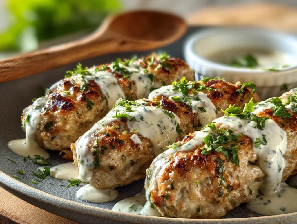 This Chicken Kofta with Creamy Garlic Yogurt Sauce is a flavor-packed Middle Eastern-inspired dish that’s juicy, aromatic, and perfect for weeknight dinners or entertaining. Ground chicken is seasoned with warm spices and fresh herbs, shaped into skewers or patties, then grilled or pan-seared to perfection. Paired with a cool, tangy garlic yogurt sauce, it’s a dish that’s as satisfying as it is irresistible.