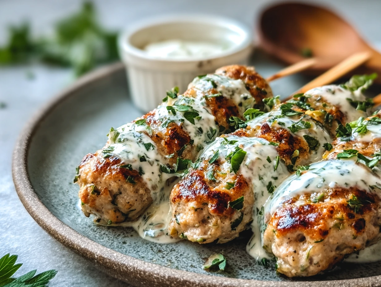 PrintIrresistible Chicken Kofta with Creamy Garlic Yogurt Sauce