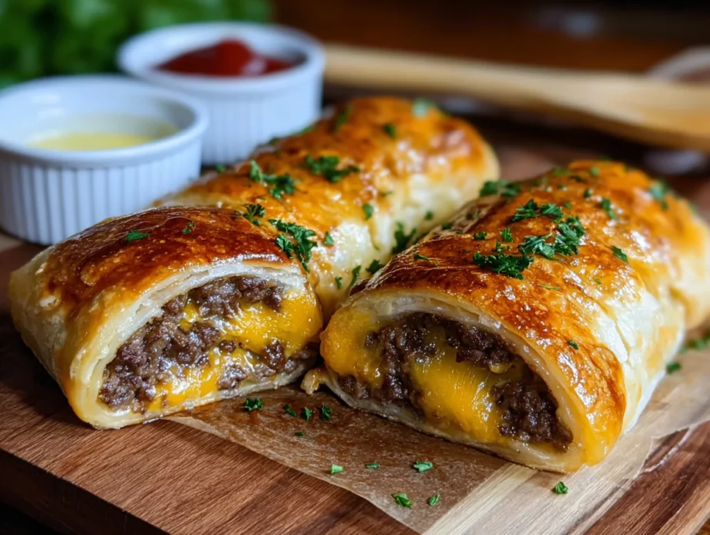 Irresistible Garlic Butter Cheeseburger Rollups are a fun, flavorful spin on the classic burger. Wrapped in soft crescent dough and brushed with garlic butter, each rollup is filled with juicy seasoned ground beef, melted cheese, and all the savory goodness of a cheeseburger in a compact, handheld form. Perfect for quick dinners, game days, or party appetizers, these rollups are sure to disappear fast.
