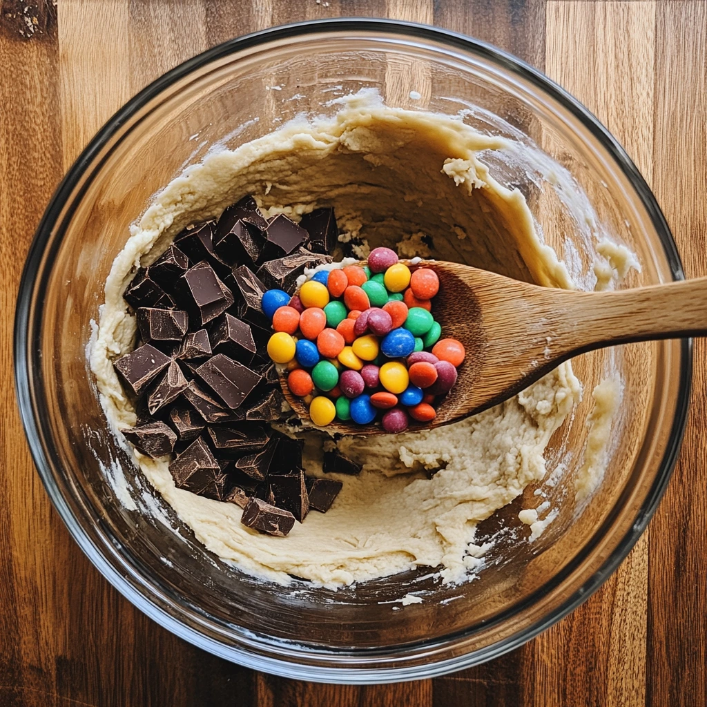 Choose your mix-ins based on your flavor mood. I often go for semi-sweet chocolate chips and a handful of rainbow sprinkles for a party vibe. Gently fold them into the dough until they’re evenly distributed. You want every cookie to have just the right amount of extra sweetness and texture. -