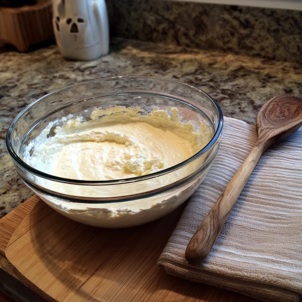 In a medium bowl, mix together the ricotta cheese, softened cream cheese, and sour cream. Stir until smooth and creamy. This layer is what gives the casserole that dreamy, velvety texture — don’t skip it!