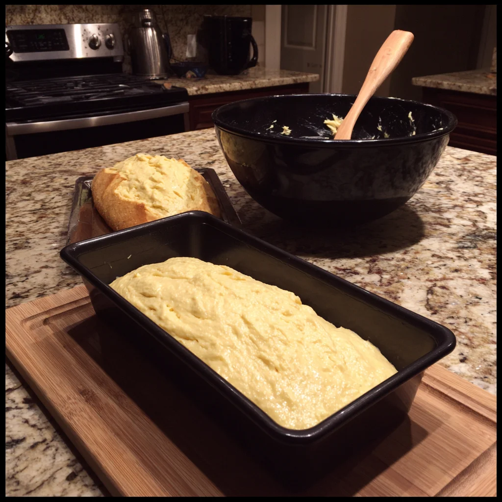 Now that your batter is nestled in the loaf pan and your oven is preheated, it’s time for the part where the magic happens—baking this no-yeast beauty to golden perfection. This is one of those recipes that makes your kitchen smell like you’ve been baking all day, even though it only takes about 10 minutes to mix up.