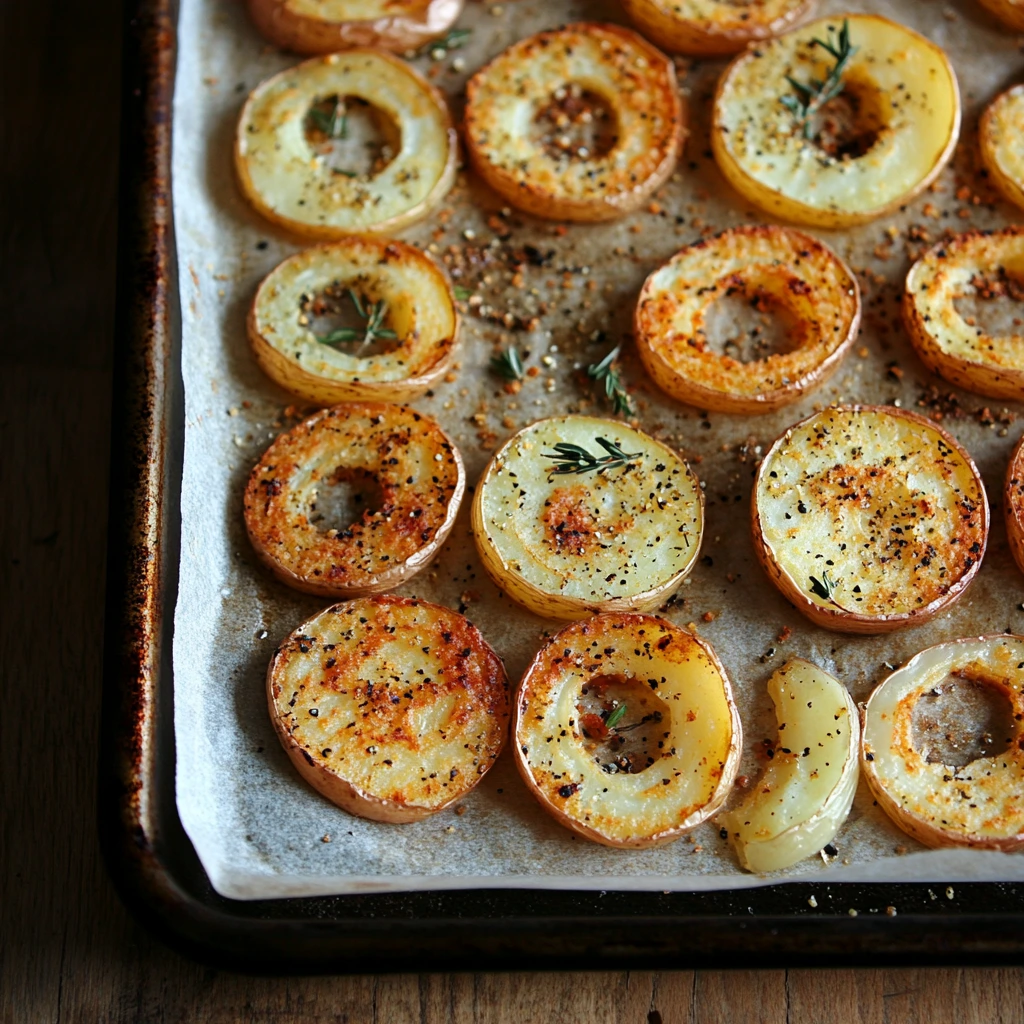Once the potatoes and onions have been spread out on the baking sheet in a single layer, it’s time to get baking. You’ll want to bake them at 425°F (220°C) for about 25–30 minutes. But don’t just set it and forget it. Midway through, use a spatula to flip everything over so both sides get the perfect golden-brown crispiness. This is key for achieving that irresistible crunch we’re all after.