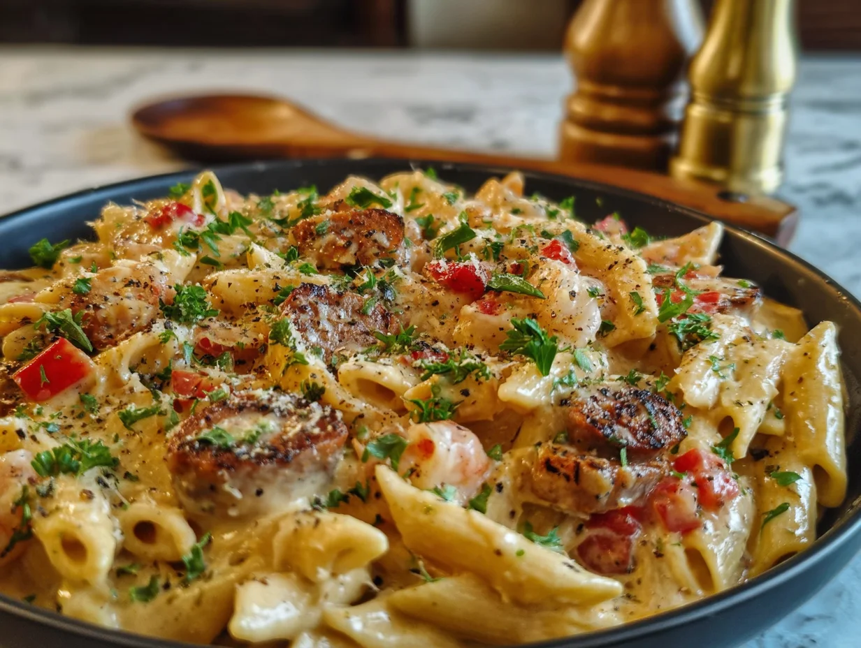 Pappadeaux Mardi Gras Pasta is a rich, indulgent Creole-inspired dish loaded with bold flavors and a creamy, spicy sauce. It combines blackened chicken, shrimp, and andouille sausage tossed with colorful bell peppers and penne pasta, all coated in a Cajun cream sauce. This dish is a celebration on a plate, perfect for anyone who loves the hearty, soulful flavors of Southern cooking.