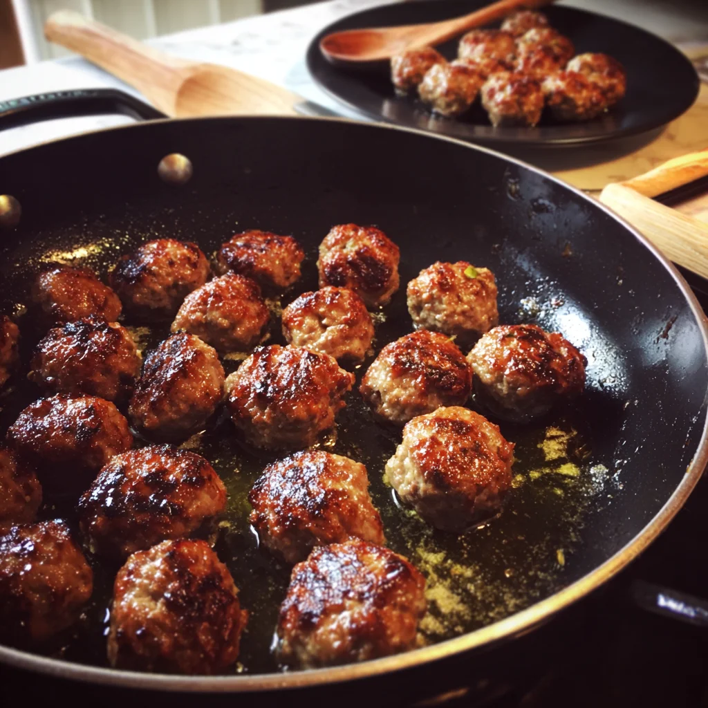 Heat a tablespoon of olive oil in a large skillet over medium heat. Once it’s hot, carefully place the meatballs into the skillet. Let them brown on all sides—this should take about 8 to 10 minutes total. Be sure not to overcrowd the pan; you want that golden sear on each one, not steamed meatballs.