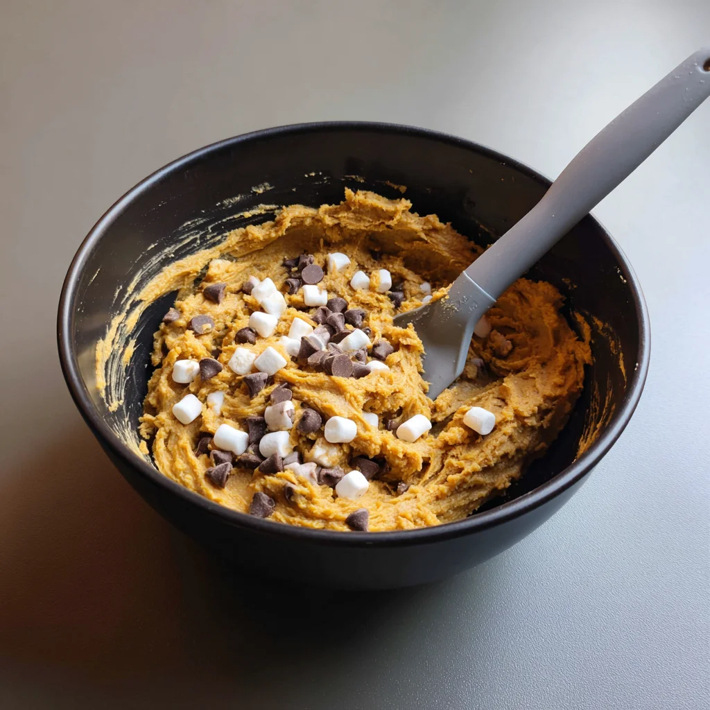 Alright, now that we’ve got our dough mixed and full of cozy pumpkin spice flavor, it’s time to take these cookies to the next level. This is where the s’mores magic really starts to happen.