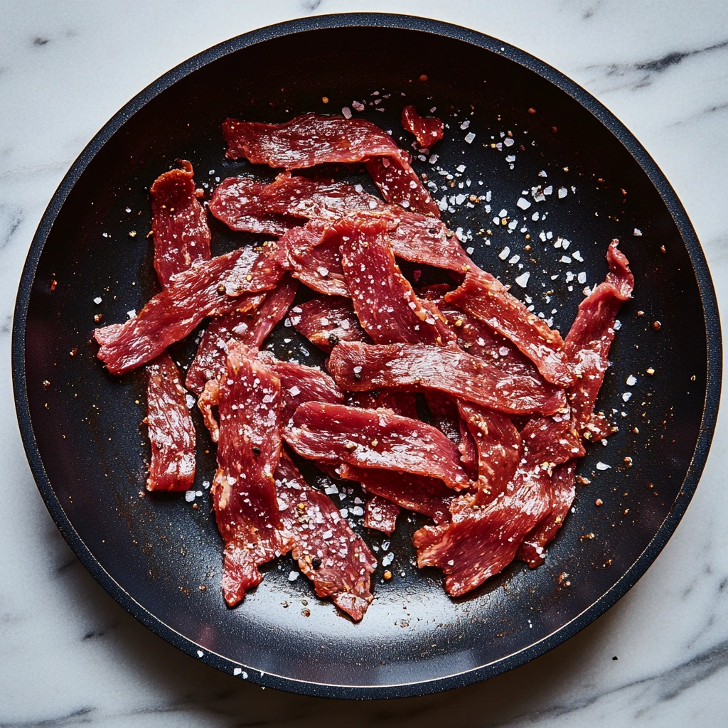 Toss in 8 ounces of dried beef, sliced paper-thin. Use a wooden spoon or silicone spatula to stir the strips into the sauce, coating each ribbon evenly. The beef will warm through in about two minutes—watch for it to go from stiff and chewy to tender and flexible.