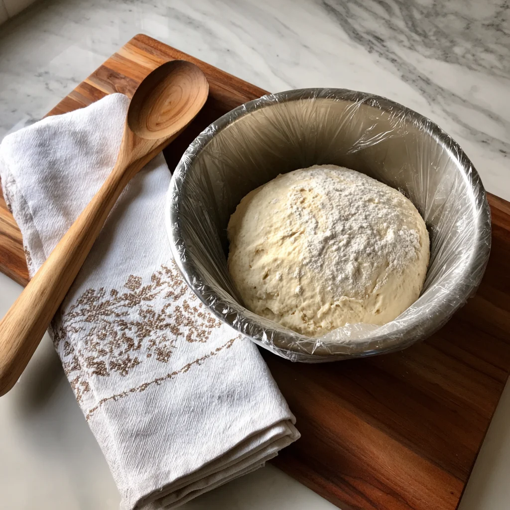 Once your dough is smooth and springy, place it into a lightly greased bowl. Cover it with a clean kitchen towel or plastic wrap and set it in a warm spot to rise. It’ll take about an hour to double in size. I usually turn my oven on for a few minutes, then turn it off and pop the bowl in—instant warm, draft-free rising space.