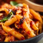 Spicy Penne Arrabbiata is a bold and fiery Italian pasta dish that brings together a simple tomato-based sauce infused with garlic, crushed red pepper flakes, and olive oil. “Arrabbiata” means “angry” in Italian, a nod to the heat of the chili that defines this dish. Quick to make and deeply satisfying, it’s a perfect option for spice lovers looking for a comforting, flavorful pasta with a kick.