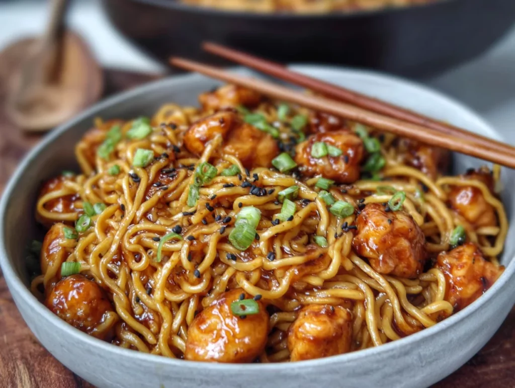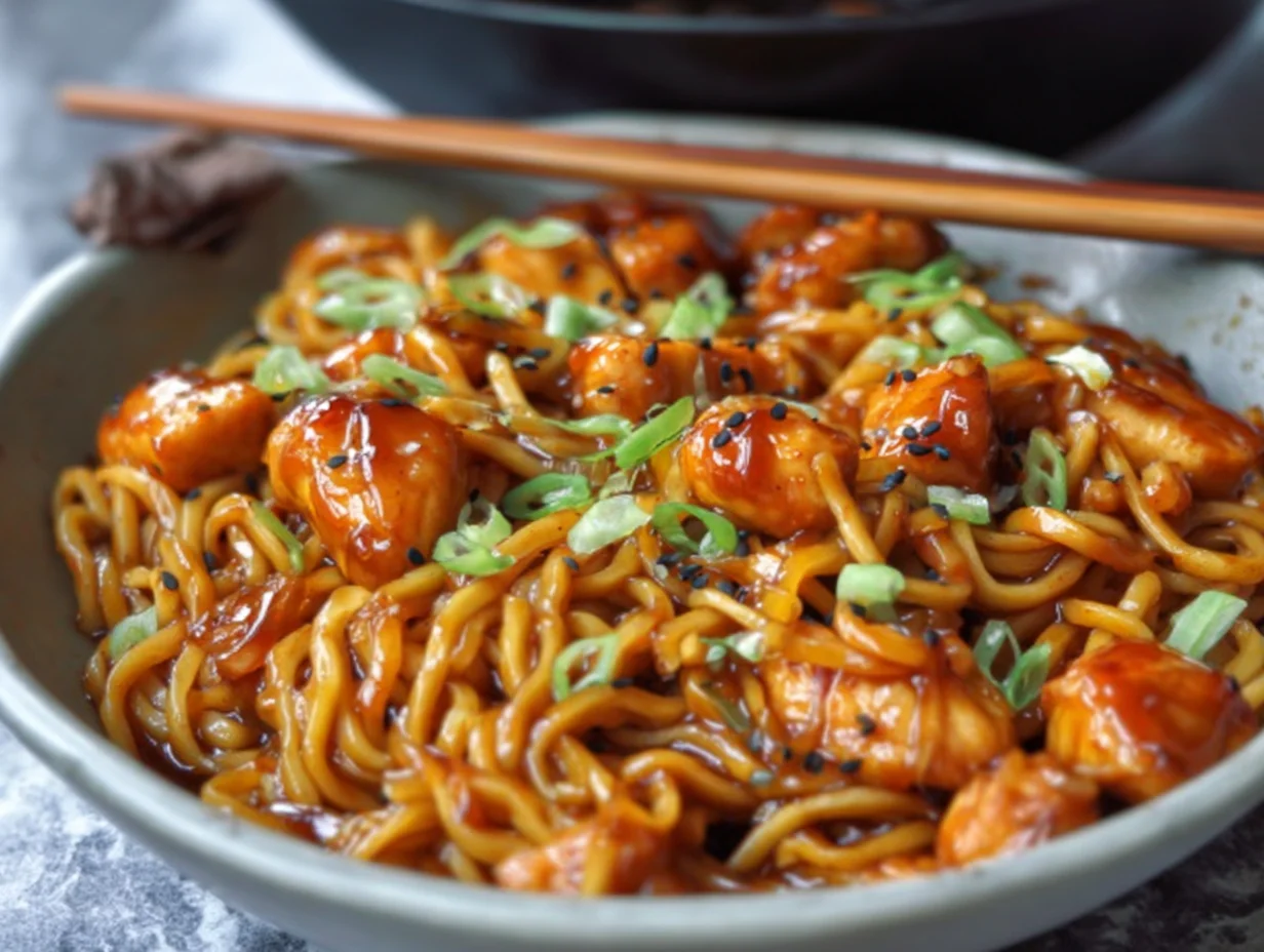 Sticky Garlic Chicken Noodles are a bold, flavor-packed dish that combines tender chicken pieces with chewy noodles in a glossy, sweet and savory garlic sauce. The rich umami flavor from soy and hoisin sauces is balanced with a hint of sweetness and a kick of spice, making this an irresistible one-pan meal that’s quick enough for weeknights yet satisfying enough for a special dinner.
