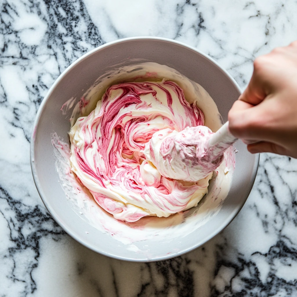 Now comes the good stuff—pour in your strawberry puree and beat until it’s fully blended. The filling will turn a gorgeous pink color, and you’ll start smelling that sweet berry scent that screams summer.