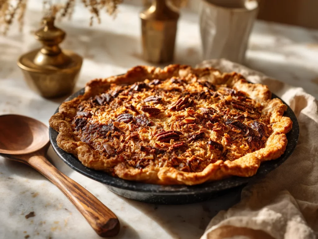 Now, full disclosure—I first made this pie on a whim during a pantry clean-out. I had a half-empty bag of pretzels, some coconut flakes leftover from another recipe, and just enough chocolate chips to make me wish I had more. But instead of trying to make something fancy, I just tossed it all together. The result? One of the most addictively rich and satisfying pies I’ve ever baked. I’ve brought it to BBQs, potlucks, even holiday dinners—and there’s never a crumb left.