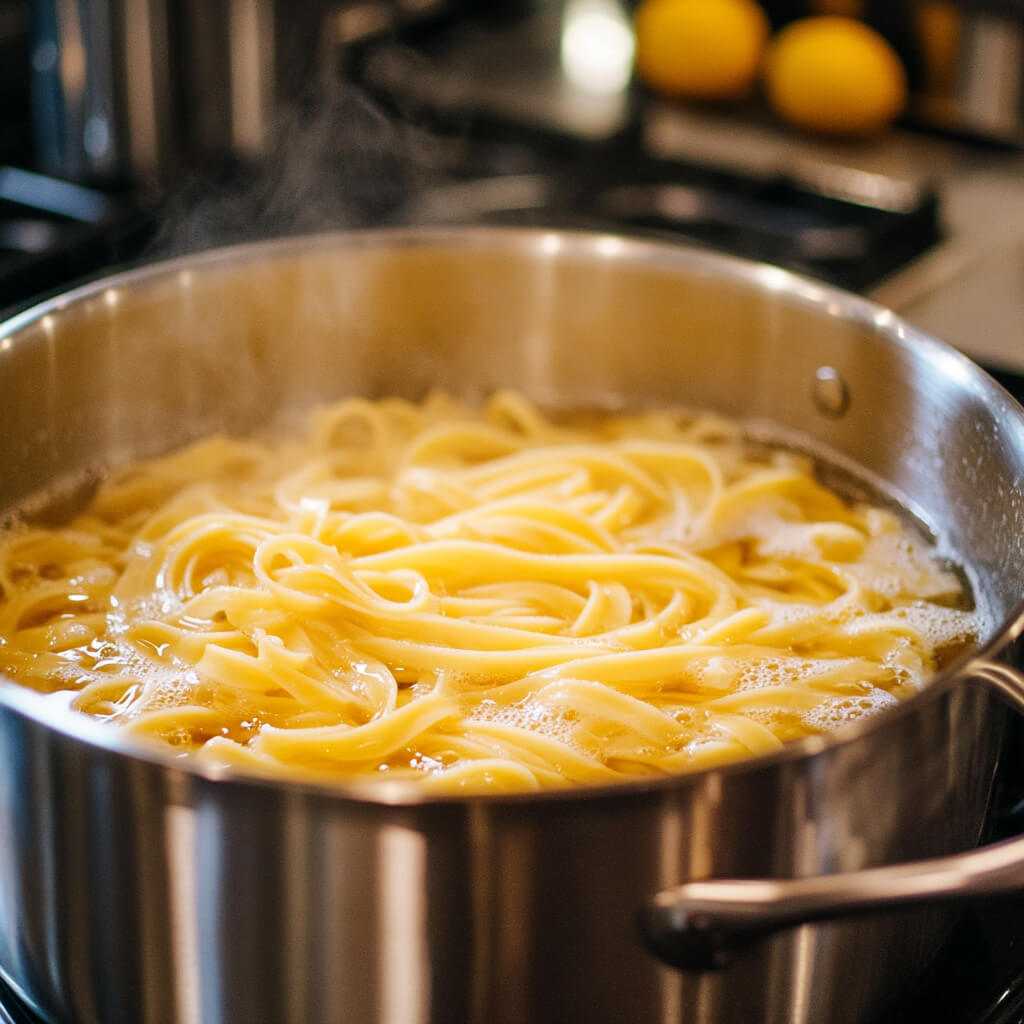 2️⃣ Add the fettuccine and cook until al dente (tender but still slightly firm).