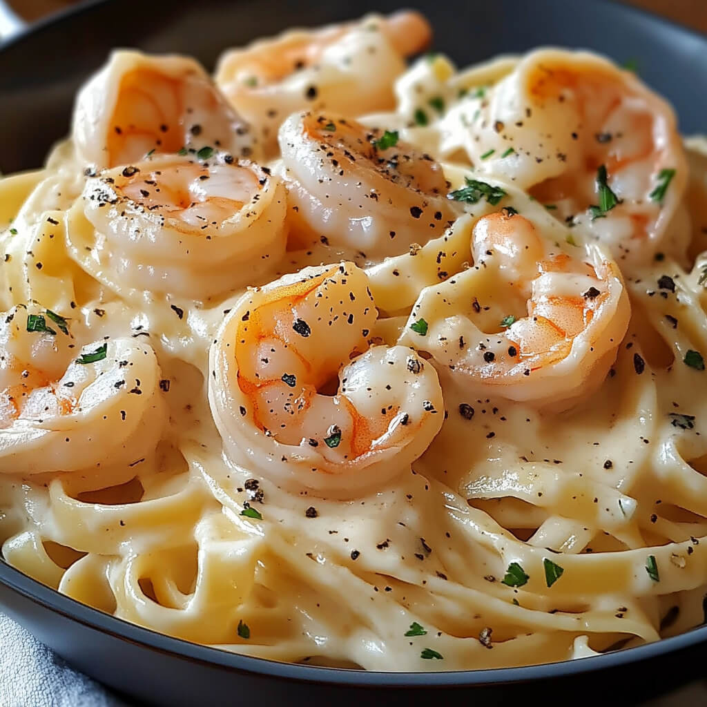 Enjoy every creamy, cheesy, shrimp-filled bite! 🍝🦐✨