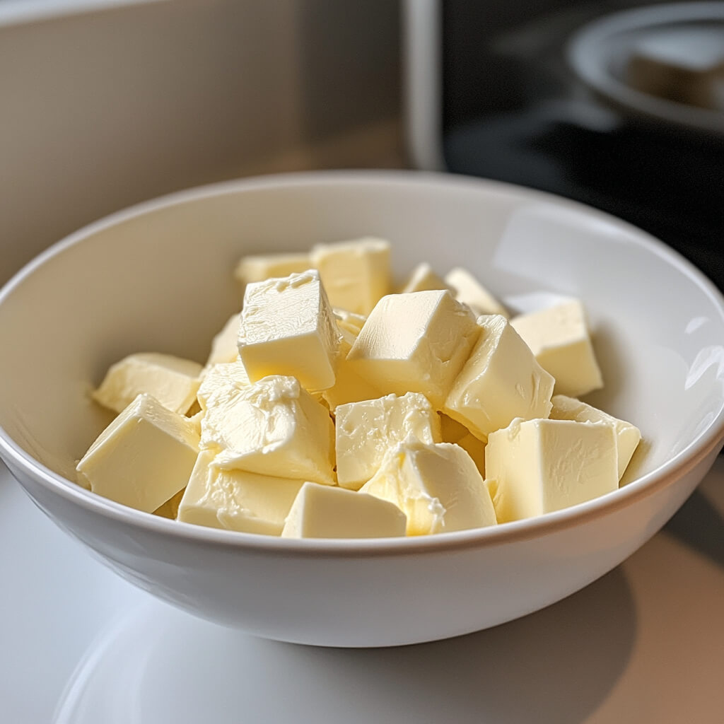 1️⃣ In a microwave-safe bowl, add cubed cream cheese and butter.