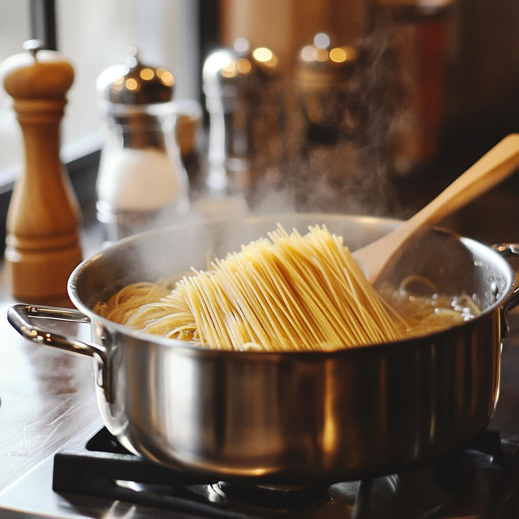💡 Pro Tip: Toss the spaghetti with a tiny bit of olive oil or butter to prevent it from sticking while you prepare the sauce.