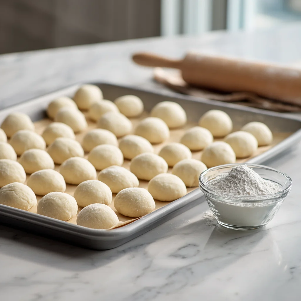 Roll the dough into 1-inch balls—I like to use a cookie scoop for even sizes—and place them on the prepared baking sheet, leaving about 2 inches between each.